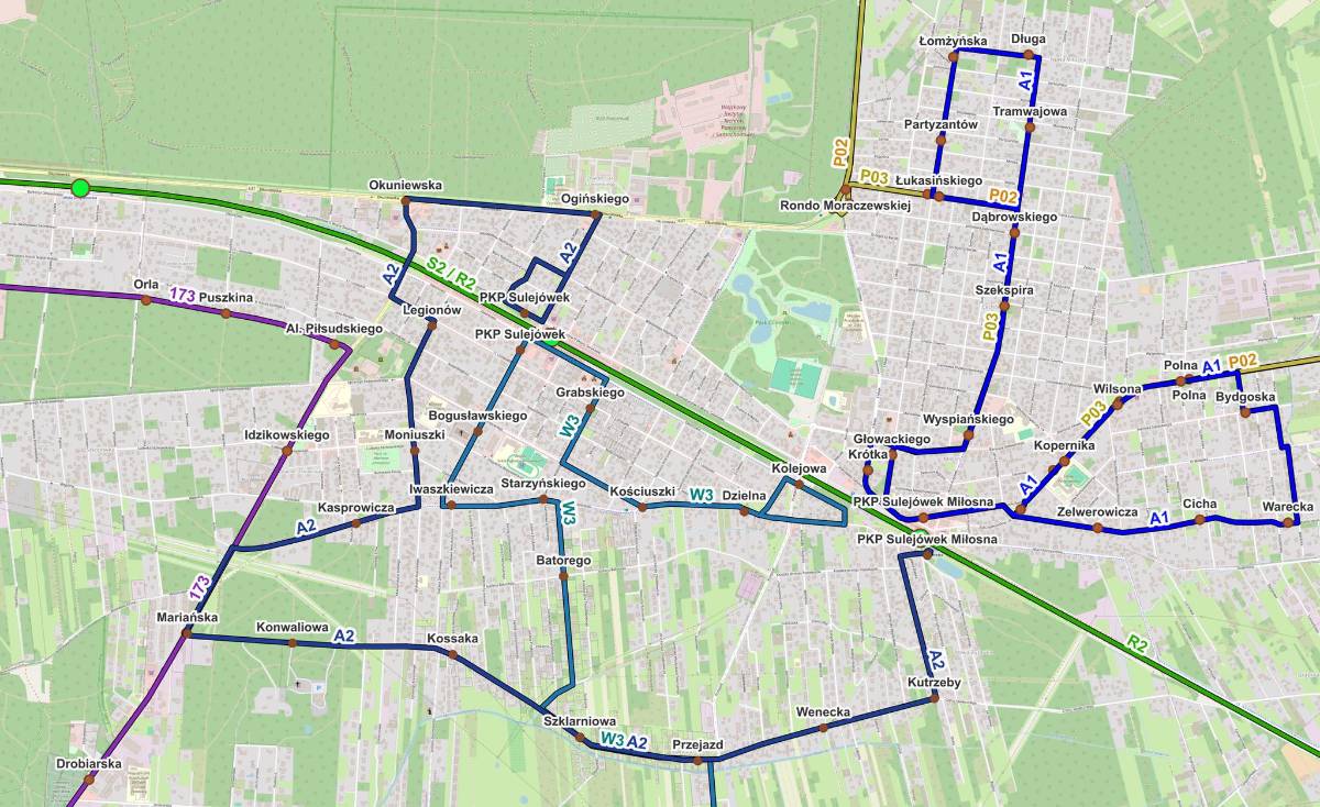 Dotychczasowa Linia Południowa zmienia nazwę na linię A2 – UWAGA: ZMIANA TRASY I ROZKŁADU PRZEJAZDU (rozkład dostępny jest na stronie https://www.sulejowek.pl/plik,14972,rozklad-a2-pdf.pdf)