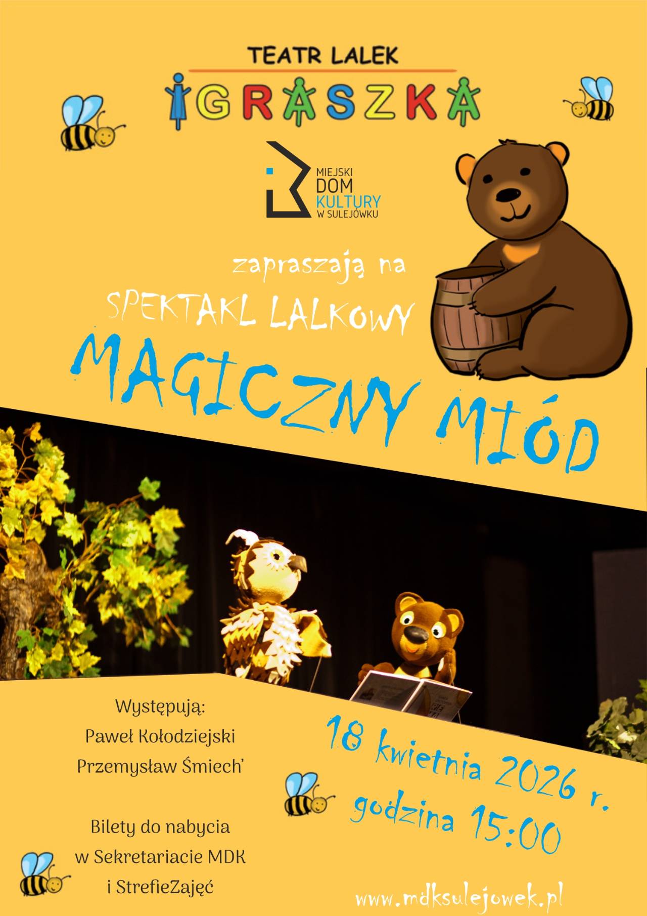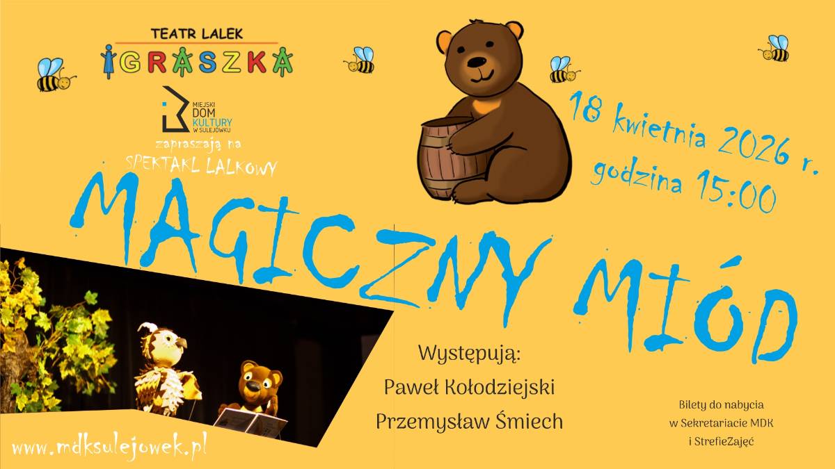 Teatr Lalek „Igraszka” serdecznie zaprasza wszystkie dzieci oraz ich opiekunów na wyjątkowy spektakl pt. "Magiczny miód".